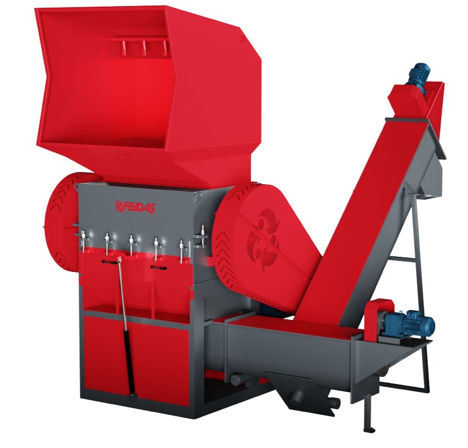 Дробилка предназначена для измельчения пластиковых отходов на мелкие частицы и подготовки их к следующей операции. Интегрированный гидромеханизм обеспечивает получение чистого и высококачественного продукта.